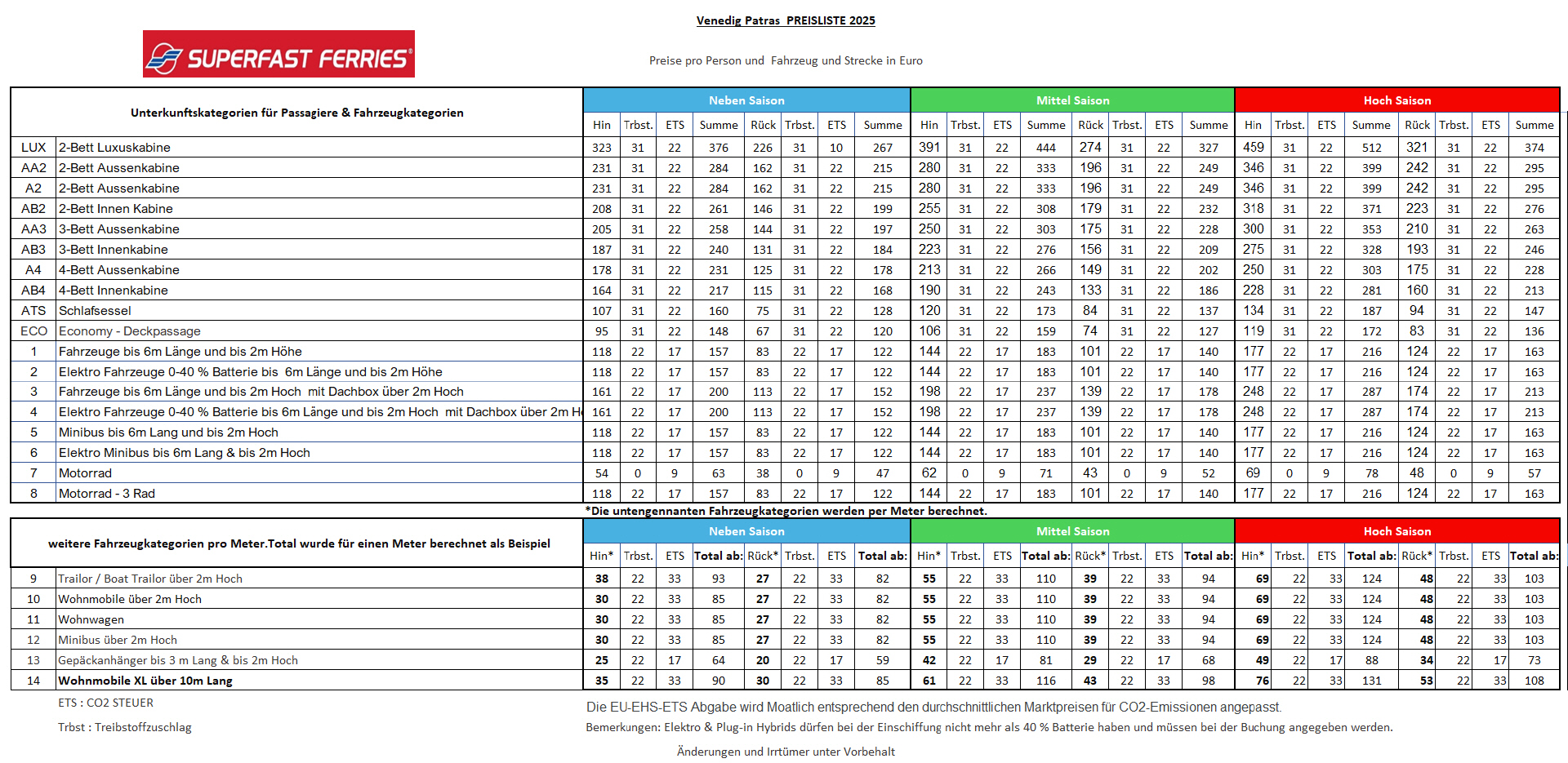 Sie sind hier: Startseite » Fähren IT-GR Venedig Route - Superfast Ferries Venegid Route Ancona Route Bari Route Italien - Griechenland online buchen Innergriechische Fährenonline buchen Anfrage senden Minoan - Infos - 30.11.2023 Ancona Route - SFF