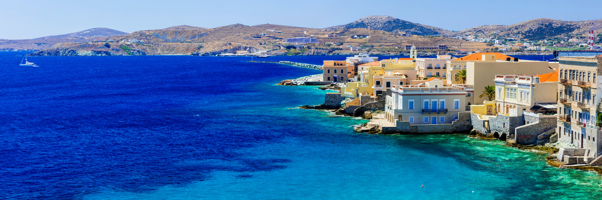 Westlich von Mykonos und nur einige Schiffstunden von Piräus entfernt liegt diese noch relativ unerschlossene Kykladeninsel. Die Insel kann auf eine glanzvolle Vergangenheit in der Geschichte Griechenlands zurückblicken - war sie doch schon in frühkykladischer Zeit besiedelt und besaß im 19.Jhdt. über 50 Jahre hinweg die bedeutendsten Schiffswerften des Landes. Die Insel war ein kulturelles Zentrum mit dem ersten Gymnasium, der ersten Oper und dem ersten Krankenhaus und mit vielen Botschaften des Auslandes. In der Hauptstadt Ermoupolis trifft man auf Schritt und Tritt auf Zeugen des Wohlstands des 19.Jhdts. Prächtige, neoklassizistische Häuser und pittoreske Gebäude verleihen den geschäftigen Gassen, dem Hauptplatz und der Hafenpromenade eine besondere Atmosphäre. Neben der Inselhauptstadt ist das alte venezianische Dorf Ano Syros ein absolutes Muss für den Besucher. Das Dorf mit seinen mittelalterlichen Gassen, der Kathedrale und den versteckten Tavernen kann man nur zu Fuß erkunden. Für den Aufstieg werden Sie mit einem herrlichen Ausblick über die Hauptstadt und das Meer belohnt.