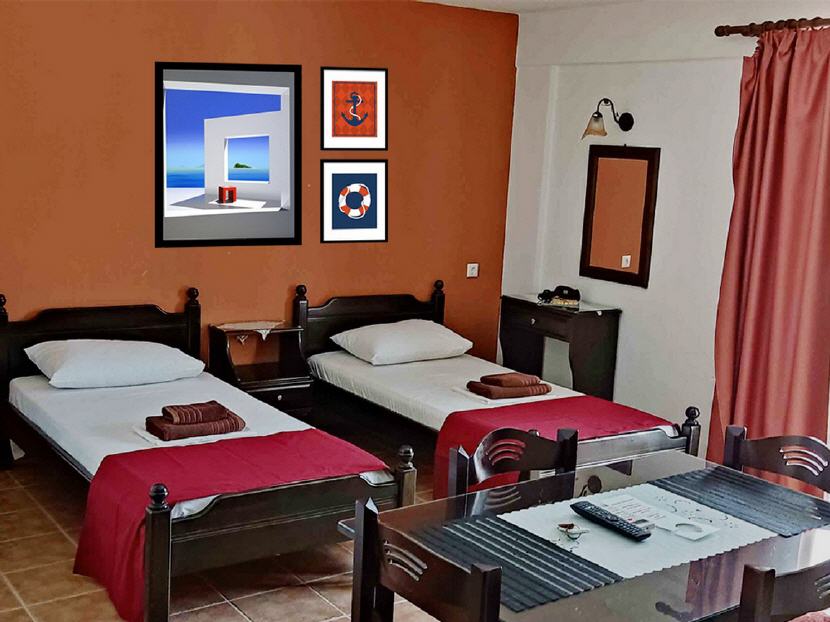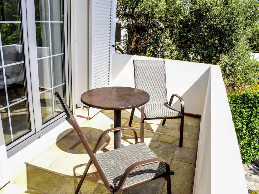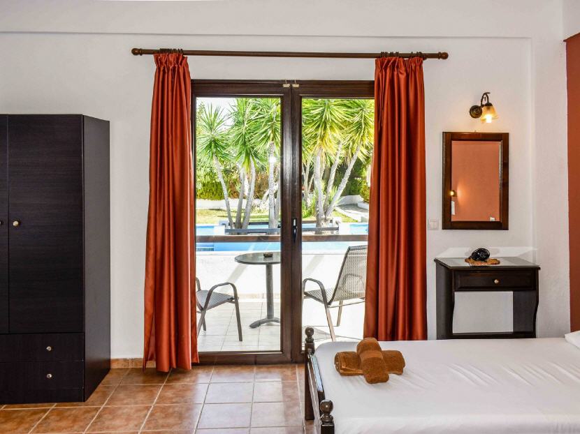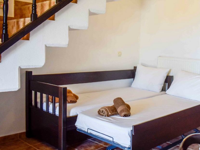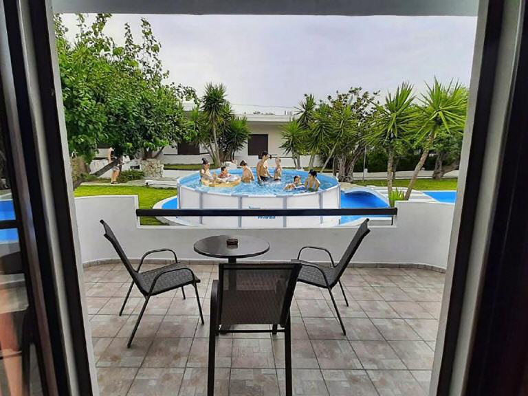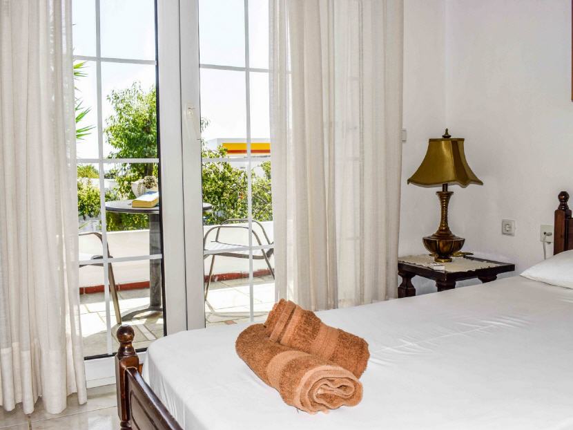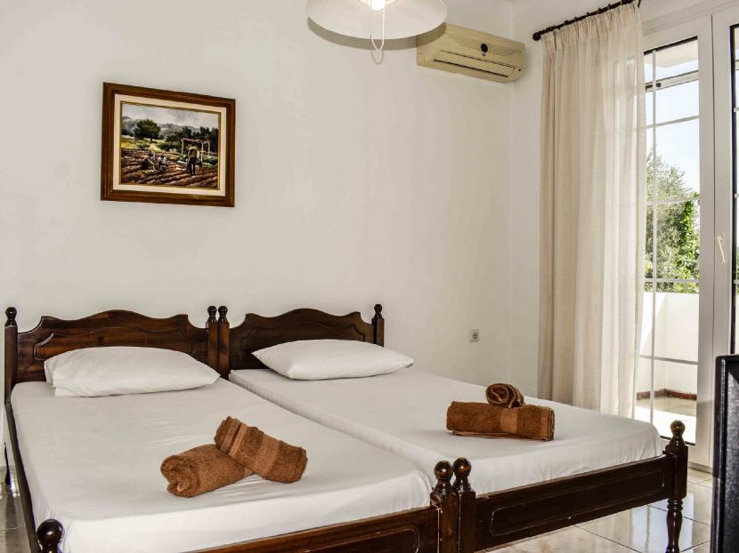 Typ B – 1X Studio für 2-3 Personen (30-32 qm + Balkon 11-14 qm): Jedes Studio ist ausgestattet: mit zwei Einzelbetten, einen Schlafcouch, Klimaanlage, Esstisch, Kühlschrank, Kochnische (ohne Herdplatten) mit Geschirr, Teller, Gläser, Wasserkocher, Kaffeemaschine, Badezimmer mit Dusche/WC, Balkon mit Gartenmöbeln und Blick auf dem Garten.