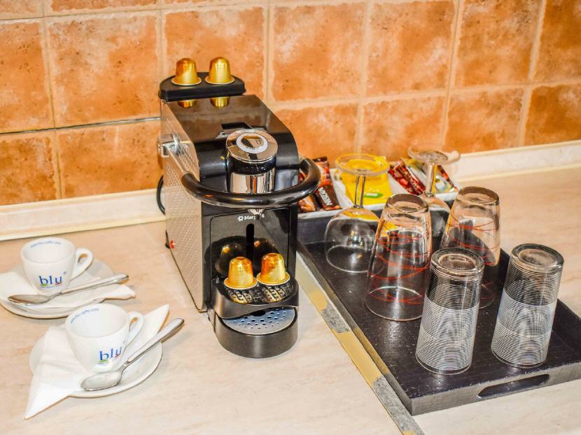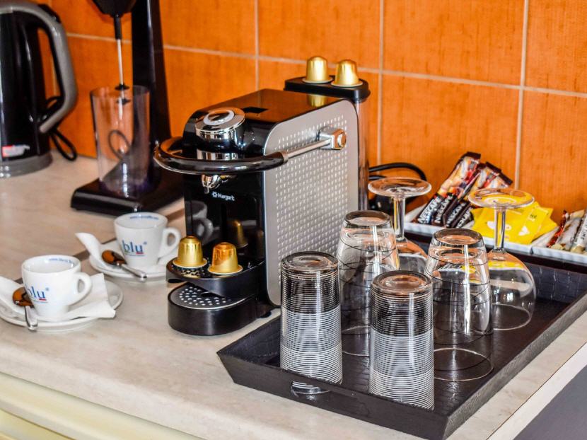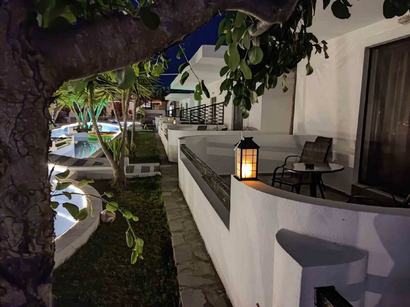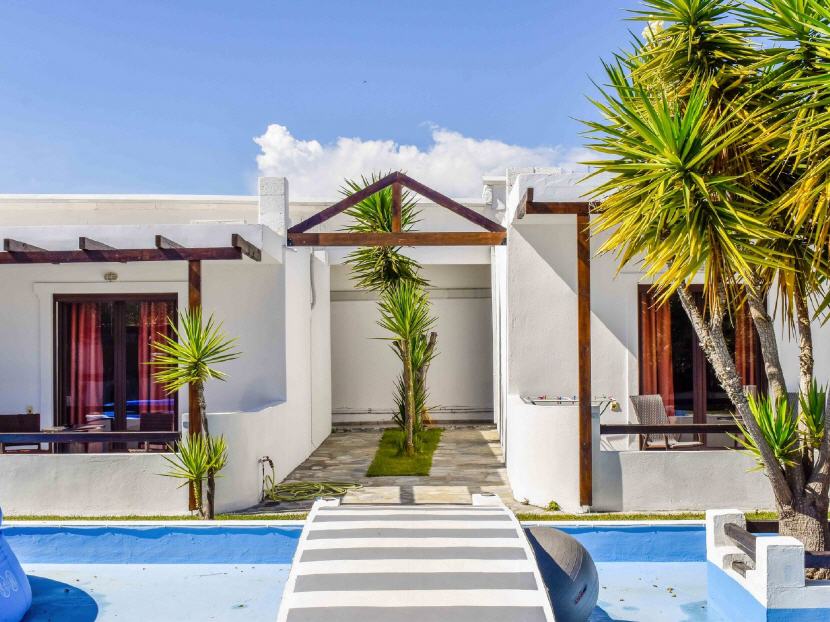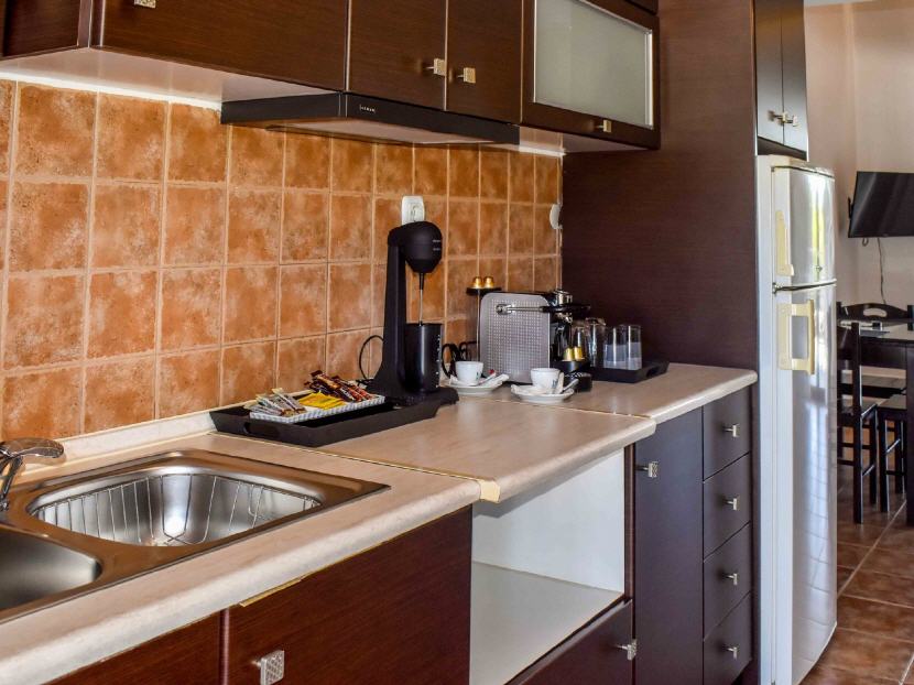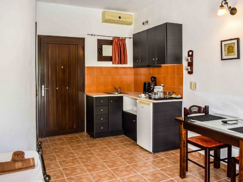 Alle Wohneinheiten sind mit Klimaanlage, Kühlschrank, Wasserkocher, Kaffeemaschine, Besteck, Teller, Gläser aber ohne Kochplatten ausgestattet.