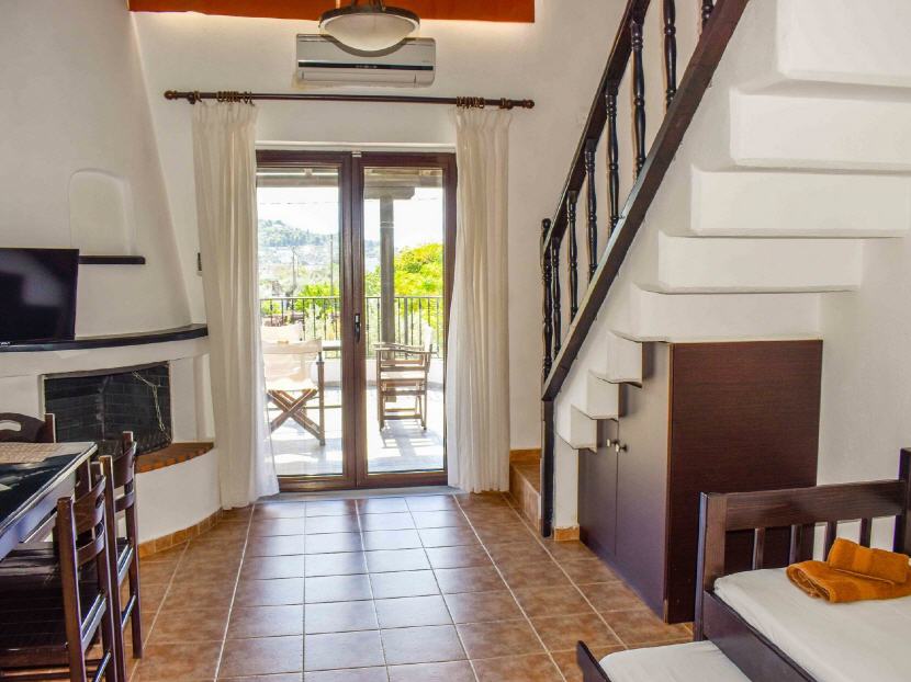 Lage: In der gleichnamigen Hauptstadt der Insel Skiathos befindet sich die hübsche Anlage mit Studios und Galerie-Wohnungen ca. 800 m vom Zentrum der Stadt entfernt. Das Zentrum ist zu Fuß gut erreichbar.
