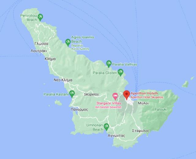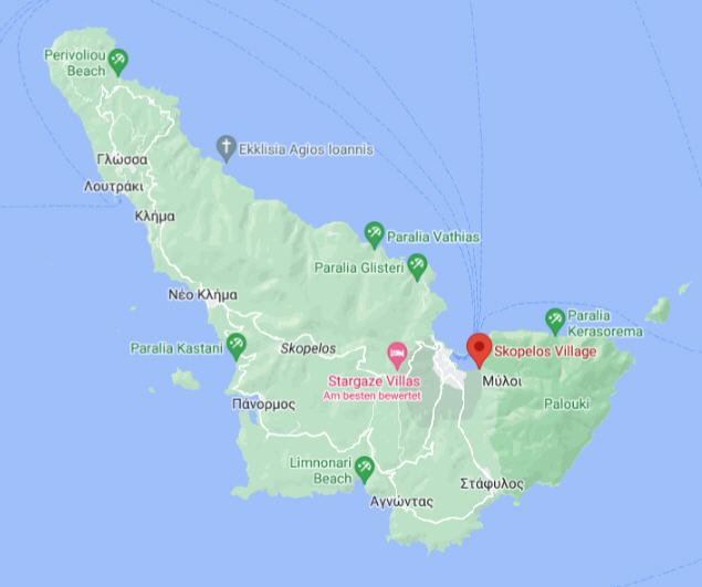 Sie ist die grösste Insel der nördlichen Sporaden und hat sich ihre Ursprünglichkeit bewahrt. Bekannt ist die Insel für ihre fast 350 Kapellen, Kirchen und Klöster, aber auch antike Stätten bieten sich als Sehenswürdigkeiten an. Die gleichnamige Inselhauptstadt Skopelos ist überaus malerisch mit ihren weissen Häusern mit den buntbemalten Balkonen. Lassen Sie sich verzaubern bei einem Bummel durch die engen Gassen vorbei an schönen Herrenhäusern, Dorfplätzen und weissen Kirchen. Der Küstenstrasse folgend entdeckt man viele romantische Dörfchen wie Klima, Glossa, den kleinen Hafen Loutraki, Stafilo, Agnondas und Panormos.