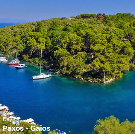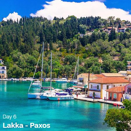 Hinweis: Das Schiff kann nicht am Yachthafen von Lakka anlegen, deshalb legen wir an einer der zahlreichen, abgelegenen Privatbuchten an!