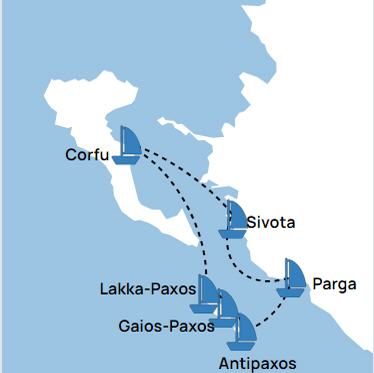 Hinweis: Das Schiff kann nicht am Yachthafen von Lakka anlegen, deshalb legen wir an einer der zahlreichen, abgelegenen Privatbuchten an!