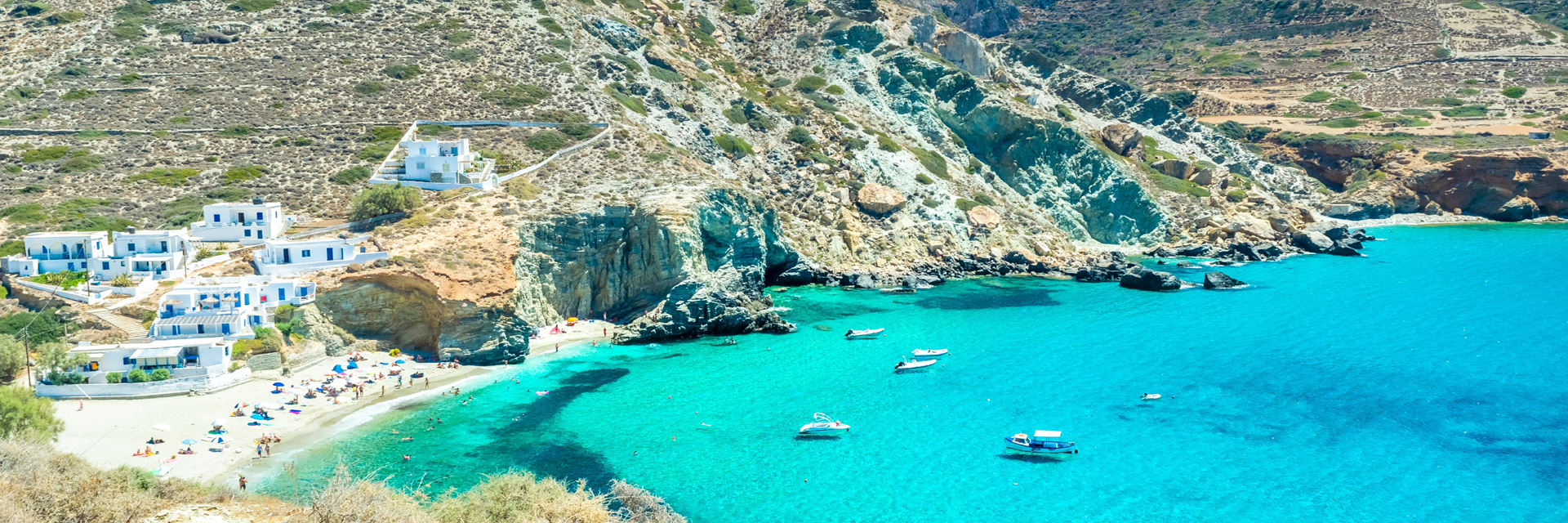 Diese zwischen Milos und Sikinos gelegene Insel der Westkykladen ist eine ursprüngliche Insel mit interessanter Landschaft, die sie ihrer vulkanischen Entstehung verdankt. Die besondere „Attraktion“ ist der Hauptort der Insel – die Chora, die sich auf einem 330 m hohen Felsen über dem Meer befindet. Die mittelalterliche Traumstadt mit weißen Häusern und engen Gassen weiß jeden Besucher in ihren Bann zu ziehen. Die Chora teilt sich in den neuerbauten Teil mit den typischen kubischen Häusern und das Kastro – Viertel mit seinen venezianischen Bauten. Von der hochgelegenen Burg Paläokastro genießt der Besucher einen atemberaubenden Blick auf die Ägäis. Der Hafen – Karavostassi – liegt genau unterhalb des Hauptortes und stellt ein kleine lebhafte Inselsiedlung dar. Folegandros bietet dem Gast eine Fülle von Eindrücken vom landwirtschaftlich genutzten Norden bis hin zum naturbelassenen Süden. Die vom Meer aus zugängliche Tropfsteinhöhle Chrissospilia und die Funde einer antiken Stadt bei der Chora sind nur einige der Sehenswürdigkeiten. Auch zum Baden finden Sie hier vor, was das Herz begehrt – den schönen Badestrand bei Livadaki oder viele einsame Strandbuchten, die man nur zu Fuß oder mit Badebooten erreicht.