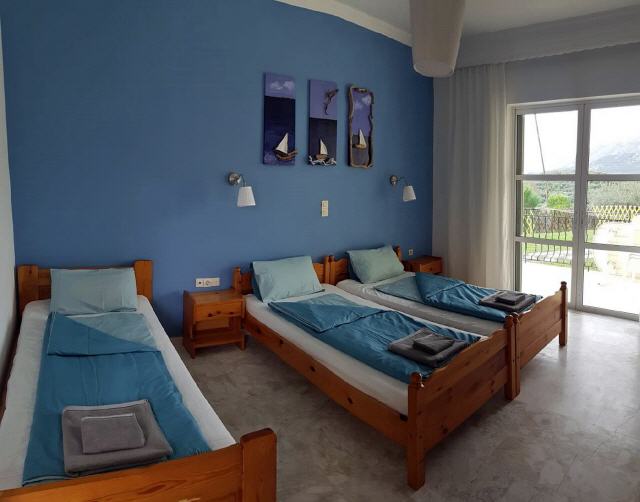 4 Studio - je 28 qm für 2-3 Personen : Das 2-Stöckiges Haus verfügt über 4 Studios zu vermieten, je ca. 28 qm groß mit 3X Einzelbetten, Dusche/WC, Fön, Arbeitstisch, Kleiderschrank, Kühlschrank, Klimaanlage, Smatr-TV, Balkon mit Gartenmöbeln und Panoramablick und enfernter Meerblick.