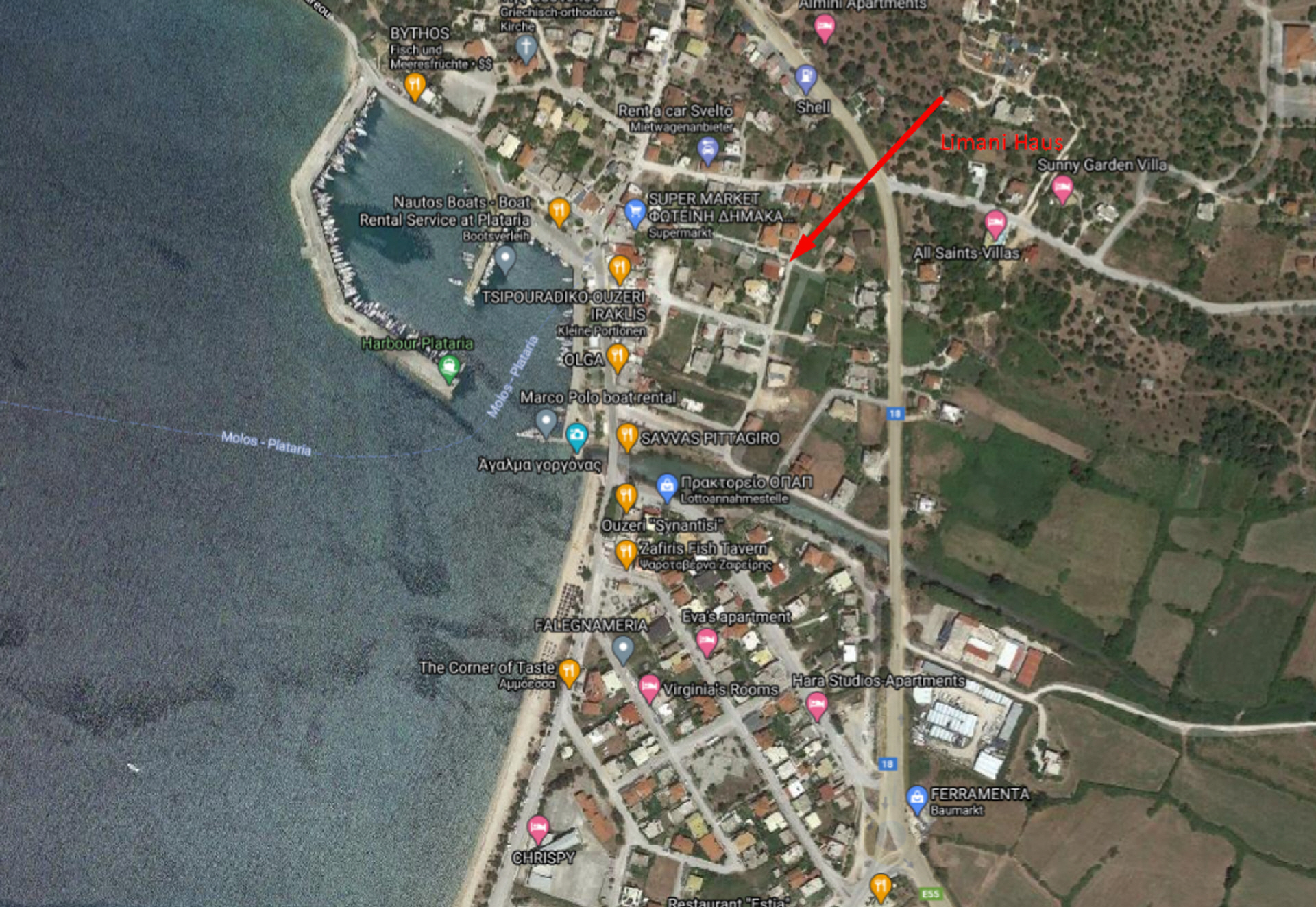 Unterhaltungs/ und Einkaufsmöglichkeiten: In nur 200 m Entfernung liegt die Ortsmitte von Plataria. Der kleine Fischerhafen und die langgezogene