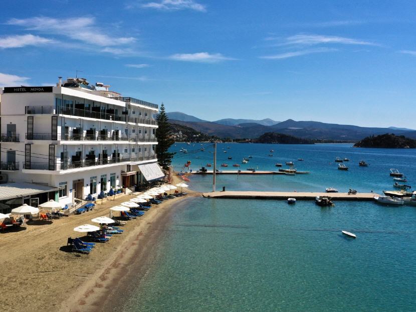 Lage: Ruhig am Ortsrand von Tolo direkt am feinsandigen Strand liegt das sehr gepflegte Hotel Minoa, ein Schwesterhotel des Hotel Knossos. Direkt vor dem Hotel dümpeln kleine Fischerboote im seichten Meer, und Ihnen bietet sich ein traumhafter Blick über die weite Bucht von Tolo mit den vorgelagerten Inseln. Sie haben vielfältige Einkaufs- und Unterhaltungsmöglichkeiten, Tavernen etc. ganz in Ihrer Nähe und in wenigen Minuten zu Fuß erreichbar.