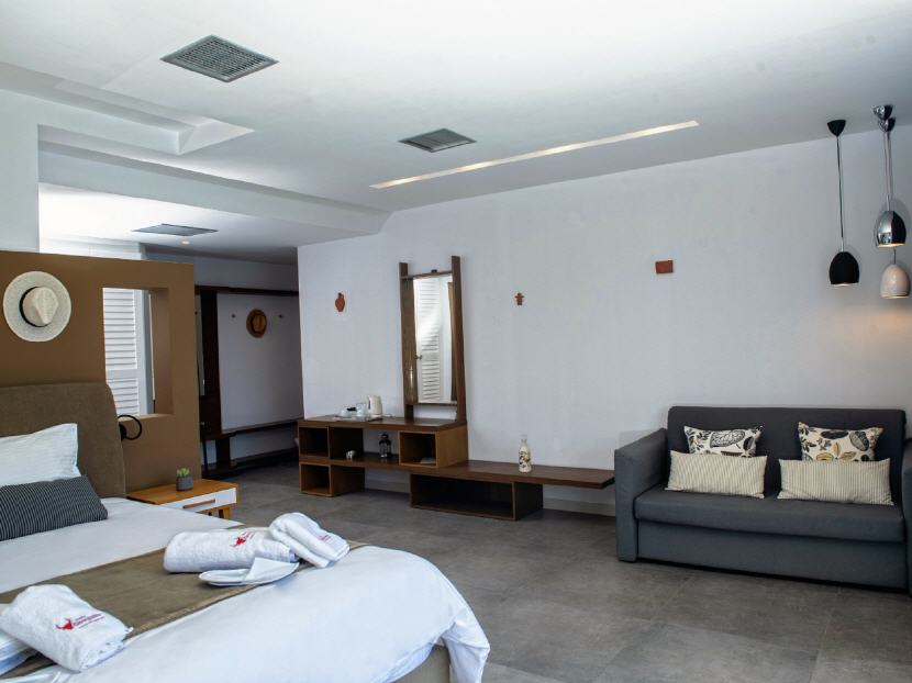 Mit 47 Zimmern bietet in familiärer Atmosphäre allen Komfort und verfügt über kleine Empfangshalle mit Rezeption, großen Aufenthaltsraum mit TV und Kamin, Bar mit schöner, großzügiger Veranda und Meerblick sowie einen freundlichen Frühstücksraum/Restaurant mit Außentischen direkt auf dem Strand.