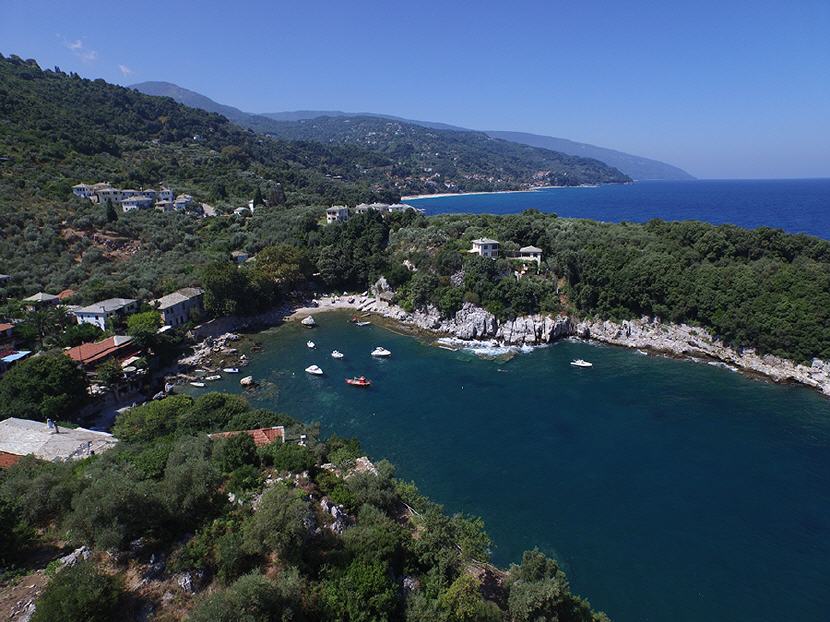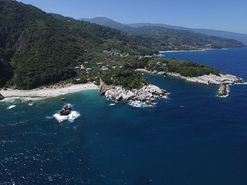 Strand: Die schöne Bucht von Damouchari liegt direkt unterhalb des Hauses, ca. 40 m entfernt. Weitere Strände und Buchten erreichen Sie im Umkreis von 4 km. Der nächstgelegene schöne Strand, Papa Nero, liegt etwa 500 m entfernt.