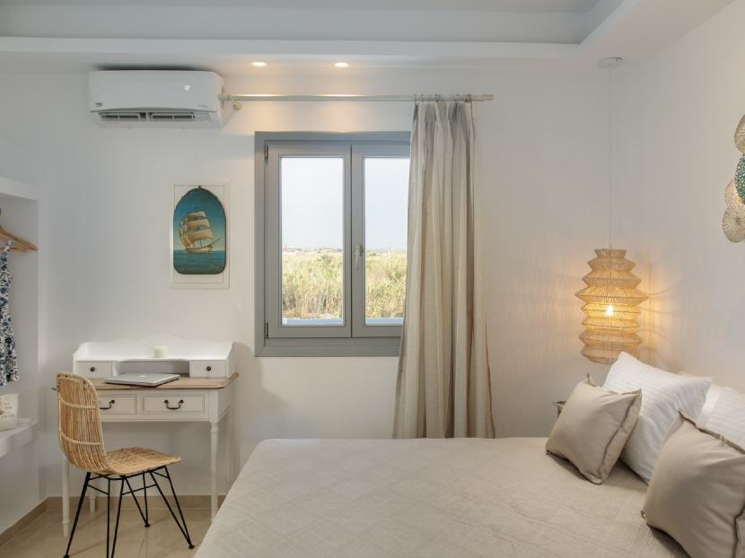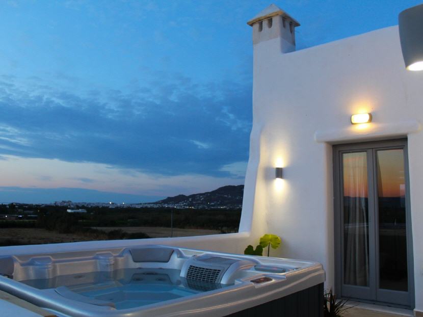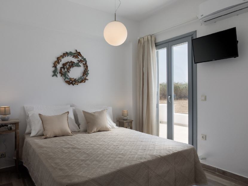 Die kykladische Architektur in Kombination mit den sorgfältig gestalteten Innenräumen schafft einen einzigartigen luxuriösen Rückzugsort, der sich harmonisch mit der warmen Gastfreundschaft verbindet, für die Naxos bekannt ist.